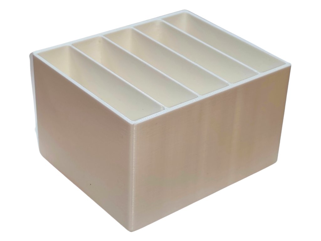 Je vytištěn z kvalitního PLA plastu pomocí 3D tisku, je lehký, odolný a snadno se udržuje. Díky jednoduchému designu se hodí do moderní i rustikální kuchyně. Už žádné rozházené sáčky v šuplíku nebo padající pytlíky na lince – vše bude krásně srovnané a hned po ruce.